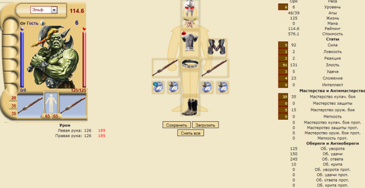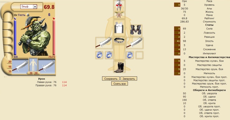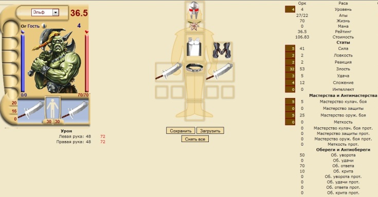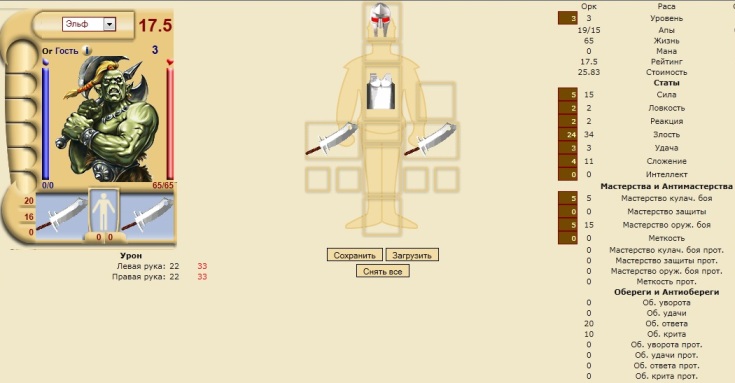 | На втором покупаем 2 тесака боевых-вот он критовик во всей своей орочьей красе,этими тесаками мы еще долго будем вводить в заблуждение по поводу нашей раскачки,апы не трогаем-бережем для третьего уровня где резко поднимем удачу-сейчас делать это необязательно т.к. удачи у нас пока мало и они просто повиснут балластом в виде более высокого рейта ,а мастерство в кулачку сейчас и впоследствии постоянно. |